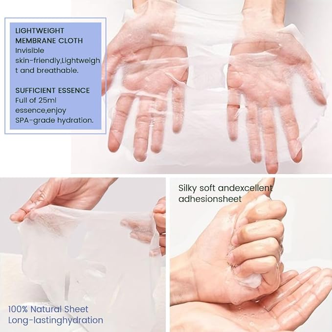• FACIAL SKINCARE SHEET MASK:This premium women's skin care mask is silky smooth,moisturizing,refreshing and has increased efficacy and adhesion to block evaporation and lock in moisture for a hydrating effect that lasts all day