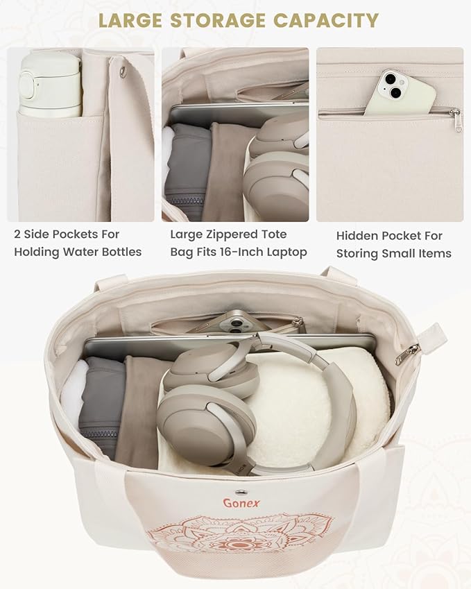 • Large-Capacity Tote Bag with Multiple Pockets: top length 20", bottom length 15", width 5", height 14", spacious enough to accommodate yoga and other sports items. It features 2 side pockets for water bottles. Inside the yoga bag, there's a small zipper pocket for storing small items like keys and phone