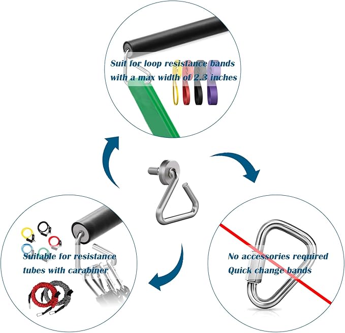 • [Perfect Applicability] - No additional accessories are required. Easy to connect loop resistance bands(max width: 2.0in) and other bands with carabiners. Convenient and quick to change weight.