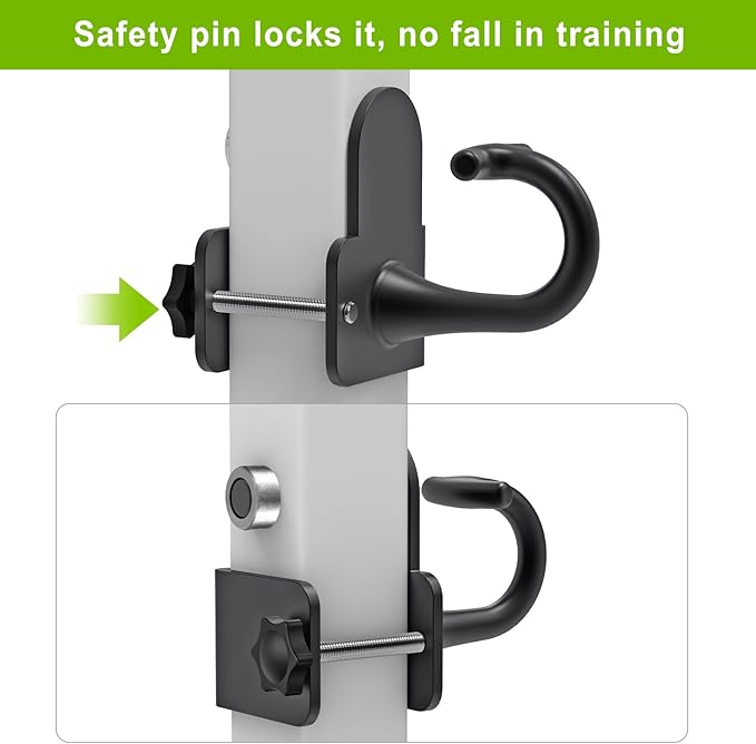 • Durable and Secure: Crafted with a one-piece design and a premium welding process, these hooks are built to last. They ensure that your resistance bands stay securely in place during workouts, preventing any risk of slippage. The rubber padding protects both your equipment and power cages from scratches or dents, ensuring a safe and damage-free workout environment