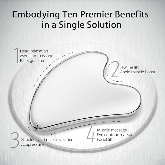 • Premium Stainless Steel, Safe & Durable:Made of high-quality PREMIUM stainless steel, this gua sha tool is sturdy, rust-resistant, and corrosion-proof. Unlike traditional jade or horn scrapers, it is more hygienic, easy to clean, and long-lasting, making it suitable for all skin types.