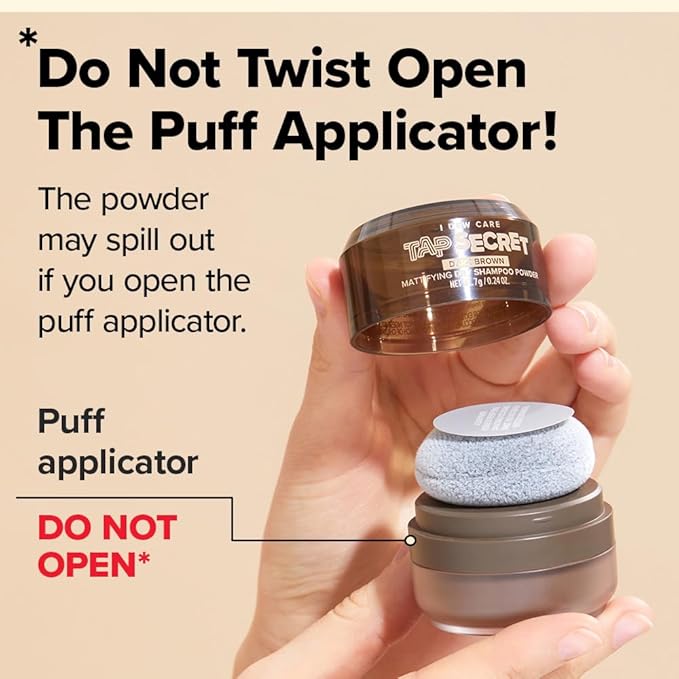 • ABOUT Tap Secret Dark Brown: Your Grease-Busting Companion - Introducing Tap Secret Dark Brown, the benzene-free ultra-fine dry shampoo powder in a 7g / 0.24 oz. tub. This hypoallergenic, non-aerosol gem is your guilt-free solution for instantly fresh hair.