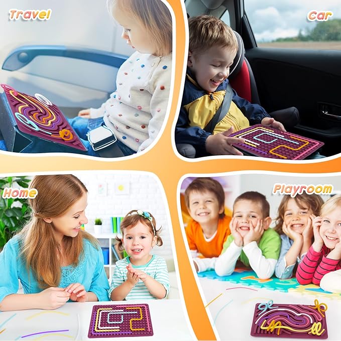 • Stress Relief: This autism sensory toys boasts vibrant colors and visually appealing effects, specifically designed to ease stress and enhance focus, excellent for sufferers of ADHD, Autism or Anxiety. You can place the silicone strings in the groves in any configuration you want, even make loops like in the pictures. It’s a perfect quiet activity