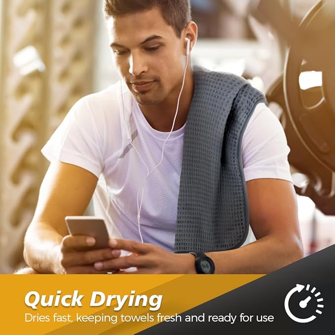 • Quick Absorption & Quick Drying: Designed with a unique waffle texture, this high-density gymm towel absorbs water more effectively than regular towels; quickly dries excess water from your hands, and dries quickly after hanging, ready for your next use