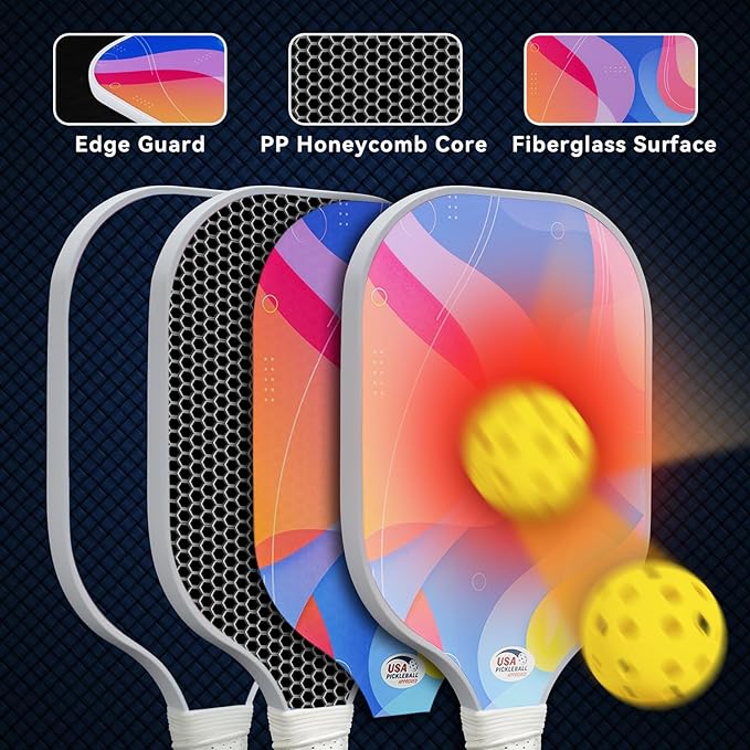 Pickleball Paddles Set of 2 with 4 Balls - USAPA Approved Fiberglass Surface, Lightweight, Non-Slip Grip - Premium Paddle Set for All Skill Levels Indoor & Outdoor