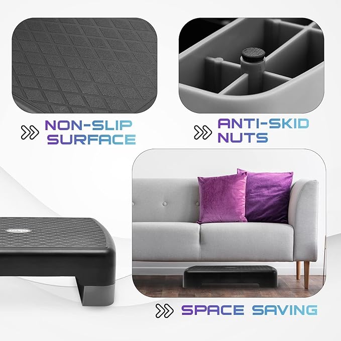 • MULTI BENEFIT WORKOUT EQUIPMENT: Offer a multitude of benefits such as building strength, maintain your body weight, tone and elevating flexibility; The mini step riser is ideal for all ages & fitness levels