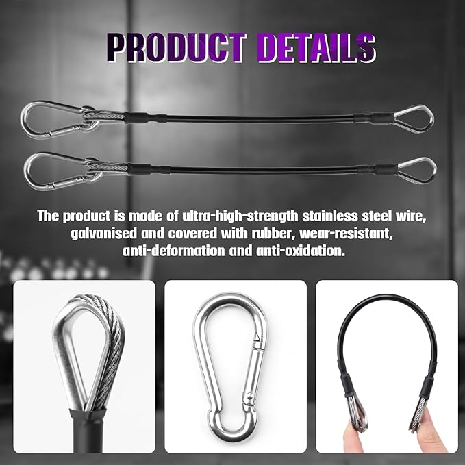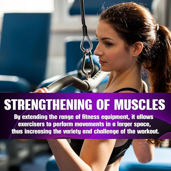 • Premium Quality & Durability: Crafted from high-grade materials, our thick and stable fitness equipment extension cords are built to withstand intense workouts. The robust construction ensures long-lasting performance, maintaining tension and stability throughout your exercises. Experience peace of mind knowing that these cables have undergone rigorous testing to meet the high standards of quality and safety for your home gym setup