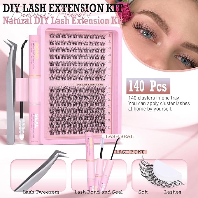 • This economical and efficient DIY eyelash extension kit includes all the accessories needed to wear the lash clusters, including 140 eyelash clusters, lash bond and seal, and lash tweezers