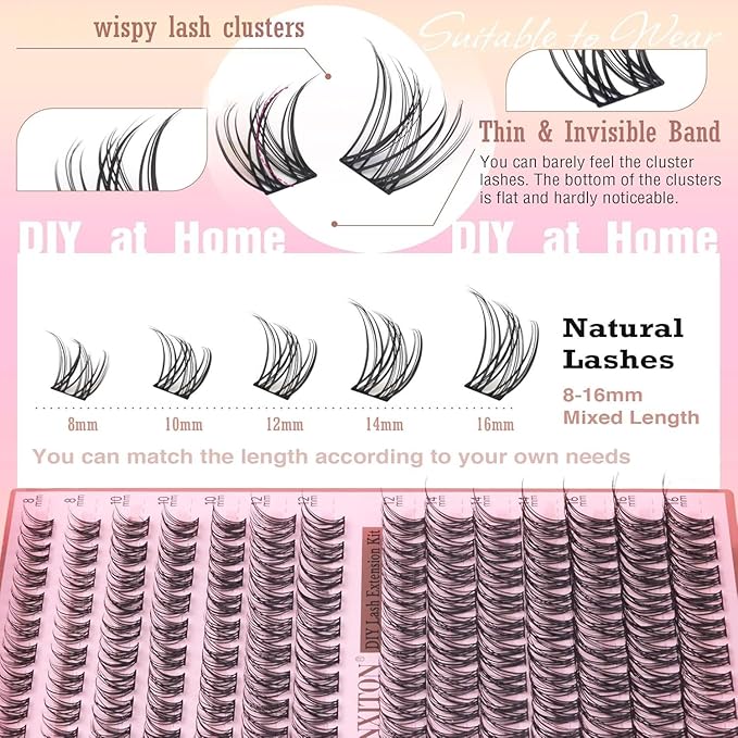 • The natural C curvature cluster lashes and 8-16mm mixed length eyelash clusters provide a natural and versatile eyelash look Suitable for creating various styles from cat eyes to baby eyes, meeting the needs of different occasions