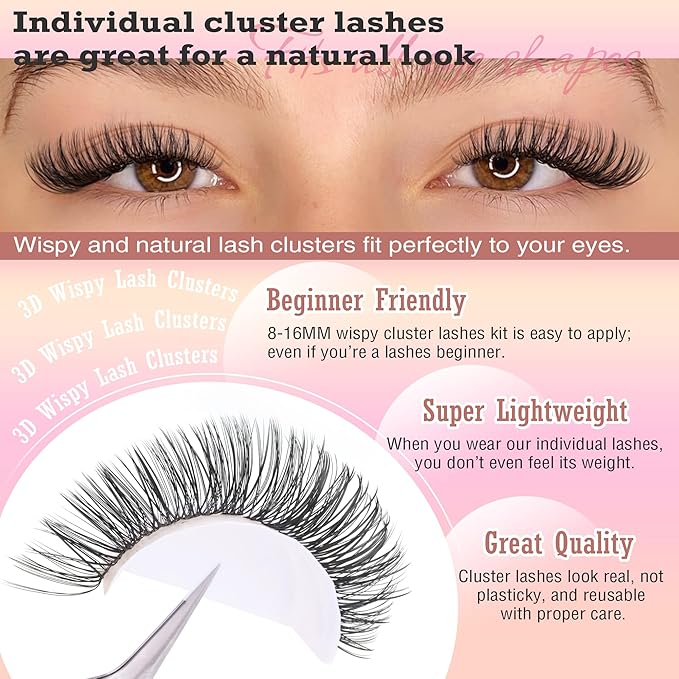 • Each box contains 280 lash clusters, easy to apply, and perfect for beginners, featuring sweatproof adhesive and sealant that reduce clumping for longer-lasting wear. Reusable and durable, you won't need to frequently purchase new lash products