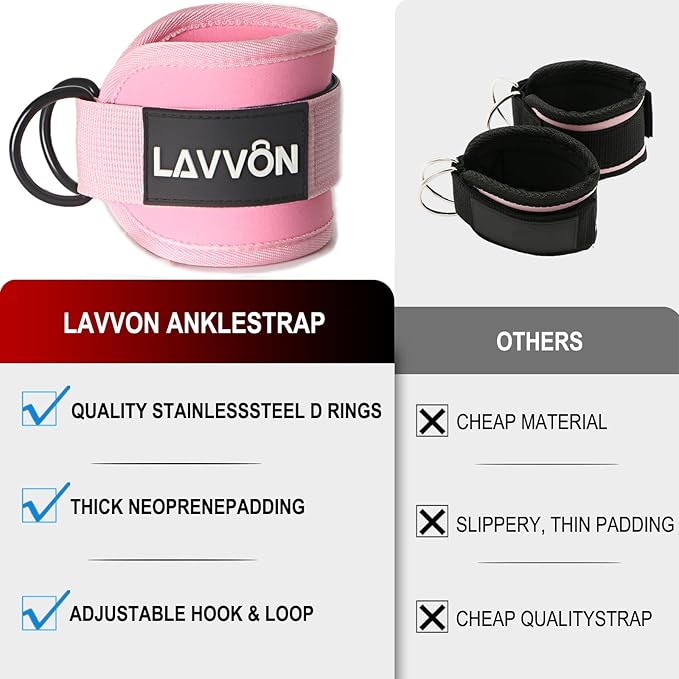 • 【LOWER BODY MUSCLES WORKOUTS】: LAVVON Padded Ankle Straps help you reach your goal of glutes, hips, calves. Tone, trim, and tighten your leg and glute muscles for a better butt, Thighs that are beach ready.
