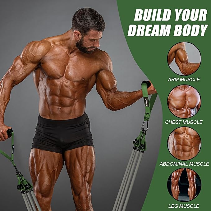 • 【Upgraded 450LB Heavy Resistance Bands】We understand that everyone's fitness journey is unique, each individual's pursuit of muscle and strength varies. That's why we've crafted this high-quality heavy-duty resistance bands set,No more wasting time commuting to the gym or dealing with poor-quality resistance band, made from 100% natural latex, resilience, ours workout bands will not snap easily, extended lifespan. A real man's resistance band suit, it's here, do you dare to challenge it?