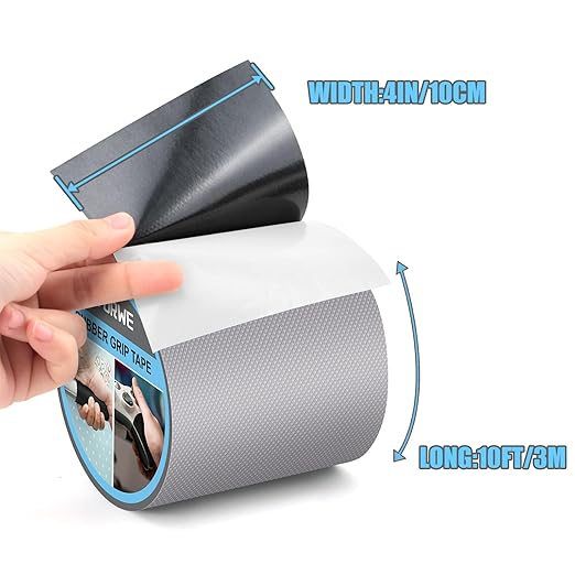 Rubber Grip Tape, Ultra-Thin Strong Adhesive Anti-Slip Waterproof Heat Resistant Wear-Resistant Cushion Pad, Making Handles or Contact Surfaces Safer, with Grip and Comfort (Gray, 4In x 10Ft)
