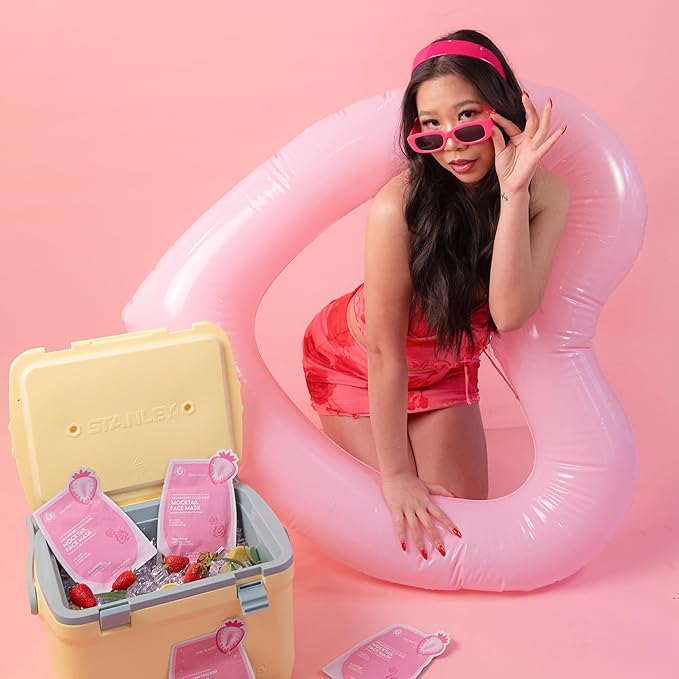 • Formulated with coconut water, strawberry extract, and green tea, this mask hydrates and calms sensitive skin, leaving it soft, refreshed, and balanced.