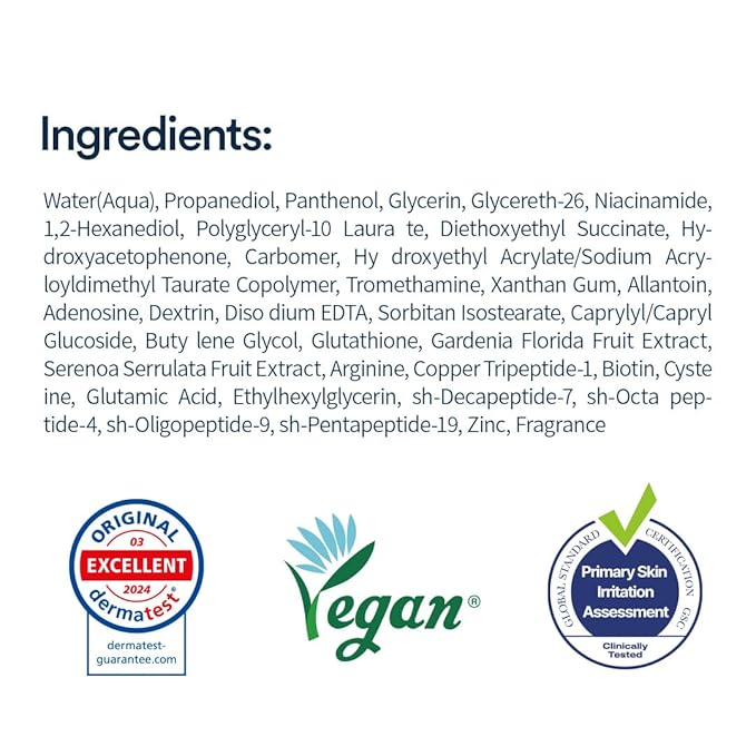 • Special Ingredients : Pepthathenol(Peptide + Panthenol), Vitamin E, Glutathione, Niacinamide, Adenosine
