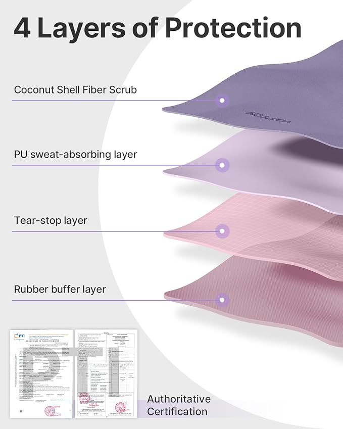 • 3.Four-Layer Optimized Structure: This mat features a four-layer design for optimal performance. The first layer is coconut fiber for enhanced anti-slip effect, the second layer offers tear resistance, the third provides high-rebound cushioning, and the fourth layer is rubber for superior ground grip, ensuring stability during every pose.