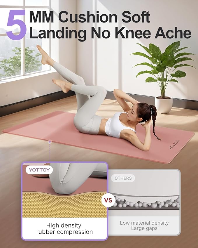 • 1.Innovative Upgraded Yoga Mat: Our YOTTOY PU Yoga Mat features a unique coconut shell material offering superior anti-slip performance. Measuring 72" x 26" x 5mm, it provides enhanced elasticity, durability, and tear resistance, making it the perfect choice for intense yoga sessions. The high-density surface ensures excellent rebound, providing a better grip and stability for your practice.