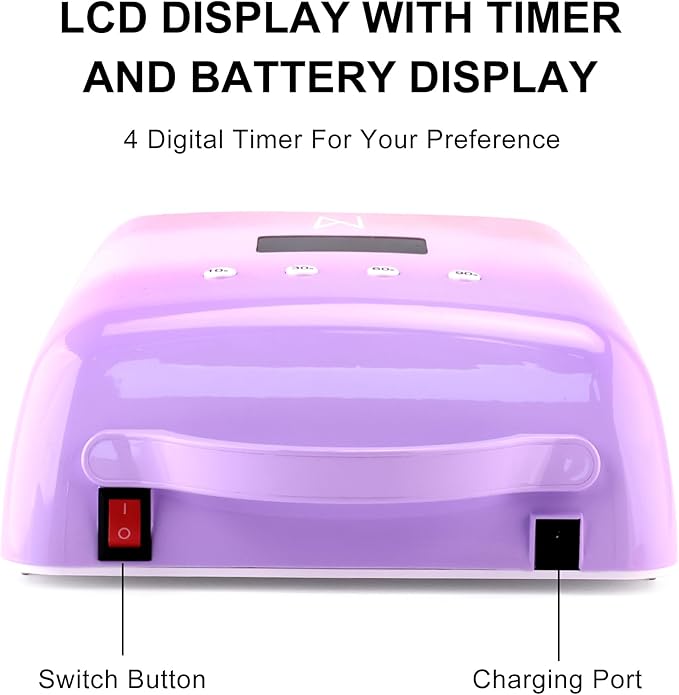 • Customizable Curing Times: Featuring a user-friendly 4 LCD time display timer, this nail lamp allows you to easily customize curing times for different nail treatments, providing flexibility and control.