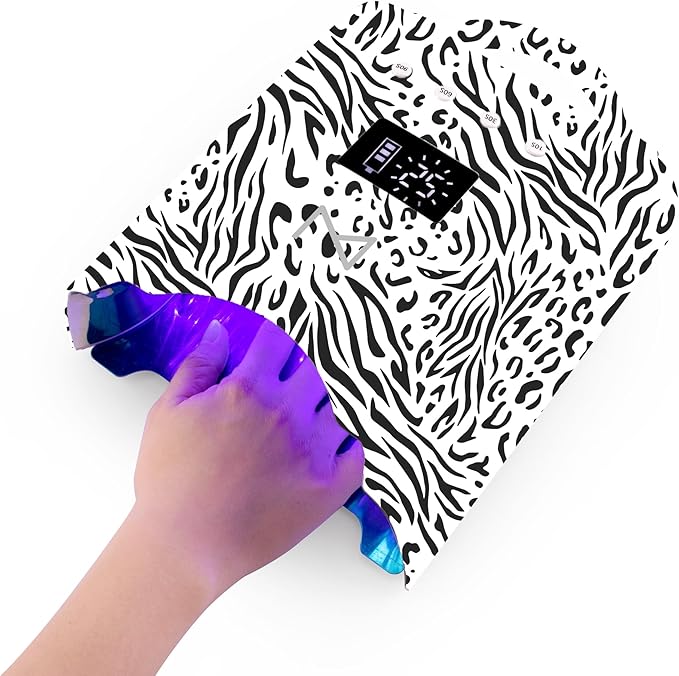 M - NEO Cordless & Rechargeable Nail Curing Lamp 78W with 4 LCD Time Display Timer, Auto Sensor, and Spacious Interior for All Hand Sizes and Nail Lengths (Zebra)