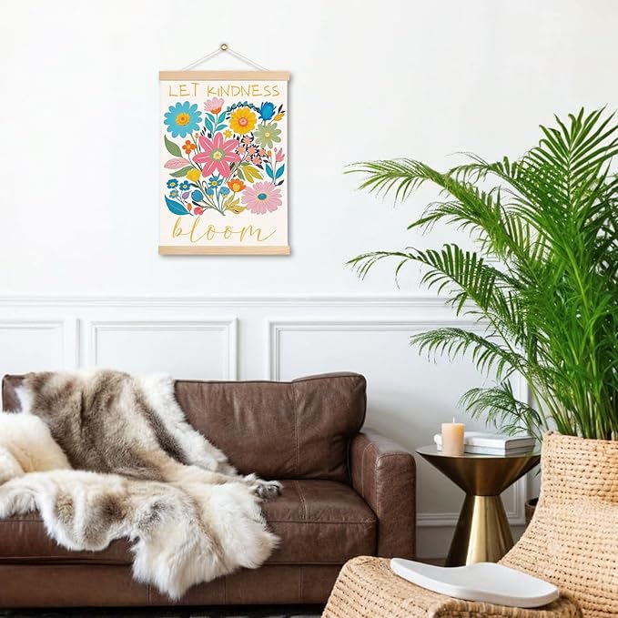 DNEULYR Let Kindness Bloom Mental Health Poster Hanger Frame, Boho Floral Wall Decor, Motivational Mental Health Wall Art Banner for Classroom Kids Room School Counselor Office Decor, 12.5x17 Inch