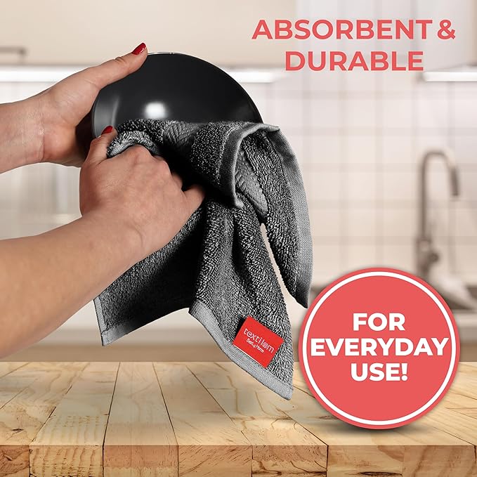 TEXTILOM 100% Turkish Cotton 4 Piece Luxury Washcloth Towel Set for Bathroom & Kitchen, Thick & Super Soft & Highly Absorbent & Quick Dry for Face and Hand- Black