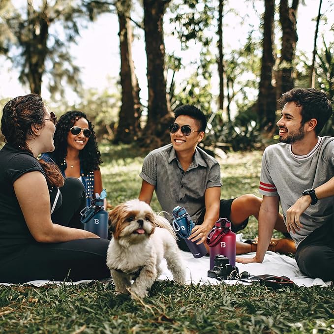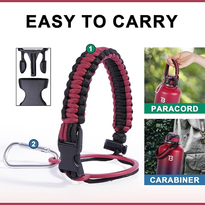 • Insulated Water Bottle 64 oz, Double Wall Vacuum Stainless Steel (Cold for 48 Hrs), Leak Proof & BPA-Free, Half Gallon Water Flask Jug with Paracord Handle & Straw Spout Lids