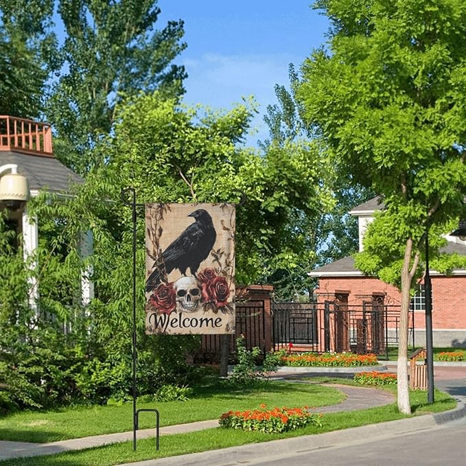 Halloween Bird Roses Garden Flag 12x18 In Double Sided Yard Flags Lawn Sign Decor No Flagstand