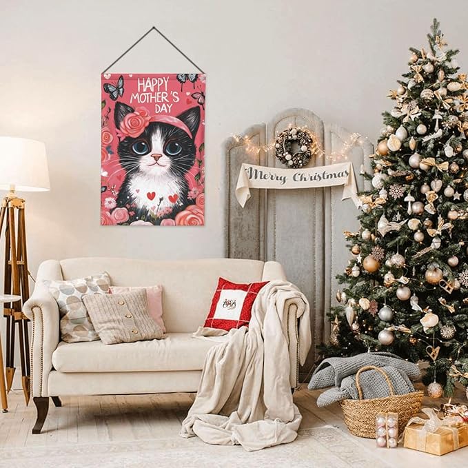 Mothers Day Cat Garden Flag 12x18 In Double Sided Yard Flags Lawn Sign Decor No Flagstand
