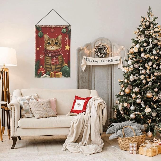 Christmas Cat Garden Flag 12x18 In Double Sided Yard Flags Lawn Sign Decor No Flagstand