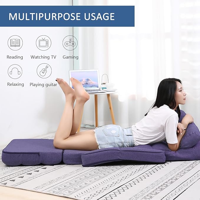 FLOGUOR 42-Position Adjustable Floor Chair, Chaise Lounge Indoor, Folding Lazy Sofa with Armrests and a Pillow Padded Adults Gaming Chairs for Living Room, Bedroom Factory Price, 8803XM (Purple)