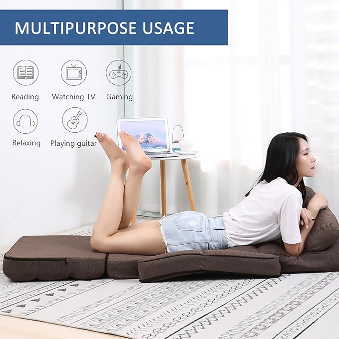 FLOGUOR 42-Position Adjustable Floor Chair, Chaise Lounge Indoor, Folding Lazy Sofa with Armrests and a Pillow Padded Adults Gaming Chairs for Living Room, Bedroom Factory Price, 8803XM (Brown)