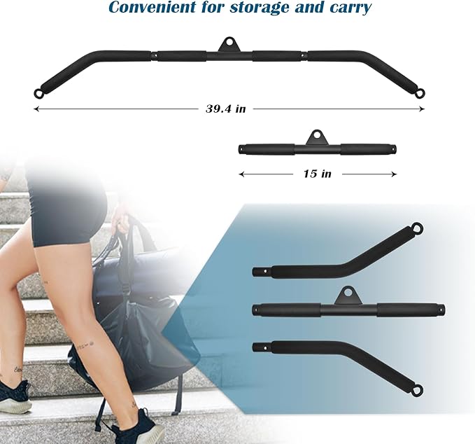 • [Professional Gym Bar] - Long bar(39.37 inches): completing actions such as lat pull down, can exercise your back and shoulder muscles. Short bar(13 inches): Suitable for lifting, rowing, Strengthen your biceps, triceps, and abdominal muscles.