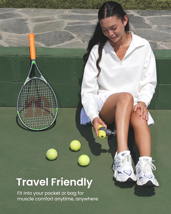 • Portable Comfort: The pocket-sized muscle massage gun weighs only 0.78lb, making easy to take soothing comfort for travel or daily commutes. It has a long-lasting battery life to accommodate your active lifestyle.