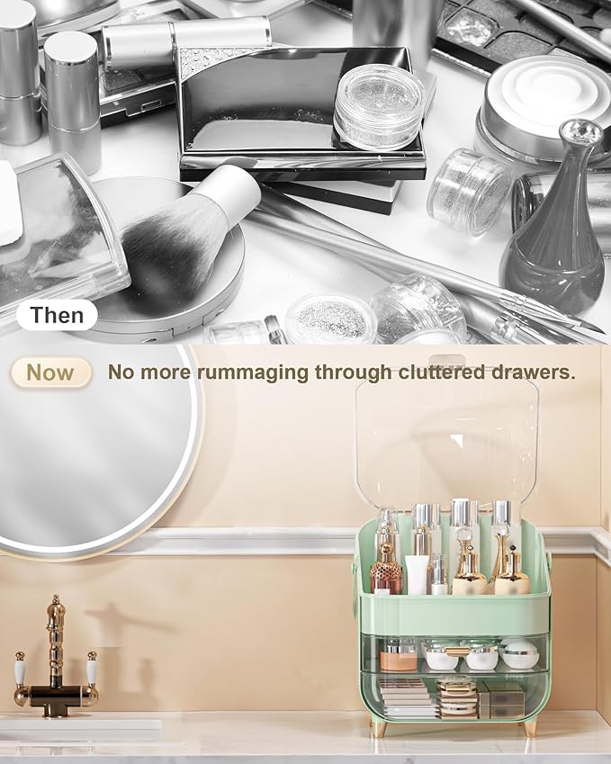 • 【Prevents Dust and Transparent 】Keeps dust and pet hair out of brushes and makeup. Keep clean and tidy. This bathroom organizer has a transparent appearance and allows you to see what is stored in the drawer. Find what you want in a second.