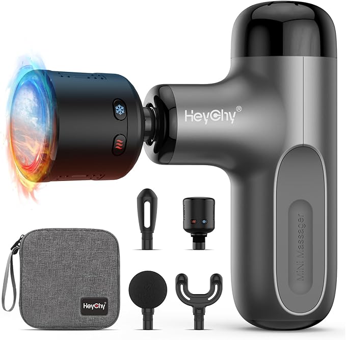 • 【Hot and Cold Therapy】HeyChy massager gun provides 1 heating and cooling massage head that can heat up to 113°F (45°C) or cool down to 50°F(10°C) for deeper muscle relaxation. You could freely choose 5 speeds and 4 attachments depending on the levels of your muscle soreness or pain by pressing the power button.