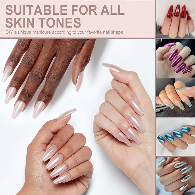 • WIDE APPLICATION:These powders need to be used with Gel nail polish(color gel,gel base coat and glossy gel top coat). Some regular Polish can also be used, but not all. These powders can be used on natural nails, UV gel nails, acrylic nails or false nail tips. You can use them very easily. It is a good solution with rhinestones 、nail art fimo or other accessories to build a nice nail art