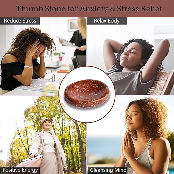 Red Que Sera Worry Stones – Crystal Thumb Worry Stone for Anguish, Stress – Relaxing & Soothing Balance Stones for Meditation, Relief – Healing Stones & Crystals for Men, Women