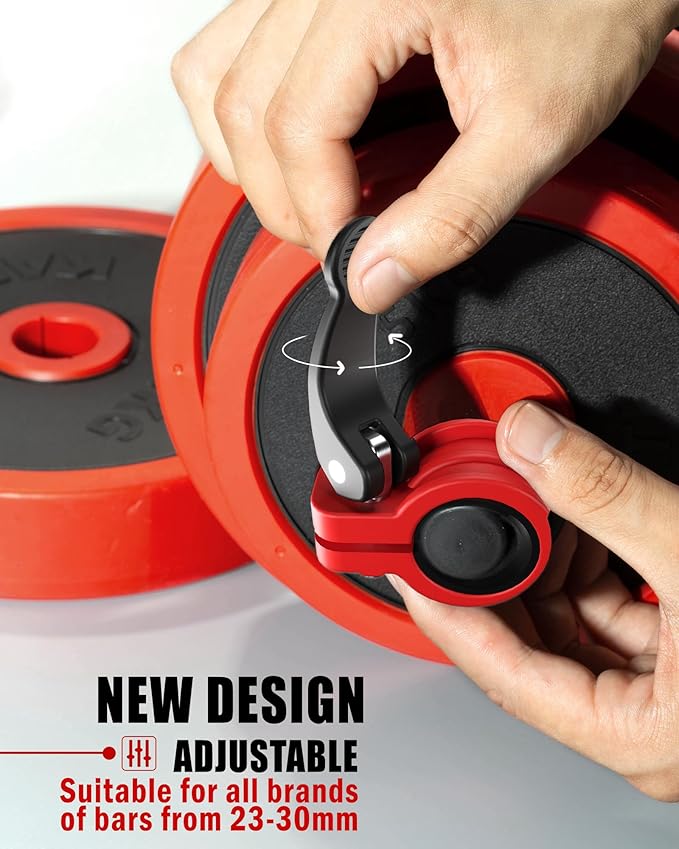 • MULTI-SIZE: Our Barbell collars can meet all your size needs. Unique design weight bar clamps accessories upgrade, accurate to every millimeter :1inch 23MM,24MM,25.4MM 27MM 28MM and 30MM ,The piston handle can adjust the tightness by itself, it will not loosen over time, durable, choose it you no longer worry about the Size mismatch problem!