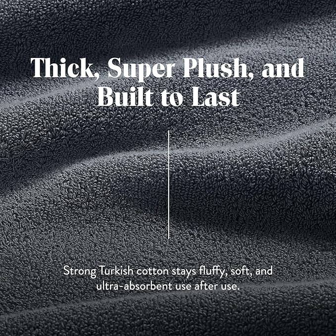 • OUR LUXURY TOWEL WEAVE: Elevate your bathroom with the supreme softness of Turkish cotton bath towels. Made from 100% premium Turkish cotton, their 820 GSM and z-twist construction deliver a superior combination of softness and durability.