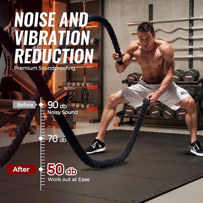 • 【Quiet and Cushioned】The soft foam layer provides excellent shock absorption, significantly reducing noise and vibrations. You can focus on your workout without disturbing your family or neighbors, allowing you to fully immerse yourself in your fitness routine.