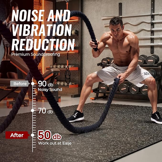 • 【Quiet and Cushioned】The soft foam layer provides excellent shock absorption, significantly reducing noise and vibrations. You can focus on your workout without disturbing your family or neighbors, allowing you to fully immerse yourself in your fitness routine.