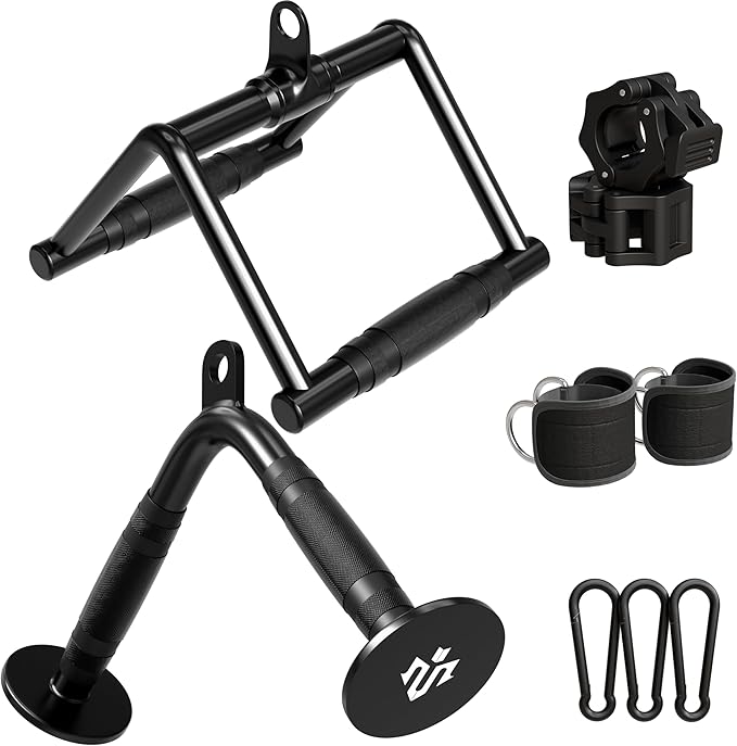 • 【V-Shaped Bar and Lat Pull Down Bar】The cable machine accessories are constructed from high-strength steel and feature rubber handles to prevent corrosion and slipping. These bars can support up to 400 lbs. The 360-degree swivel design ensures smooth and consistent motion during workouts, fitting comfortably in your hands