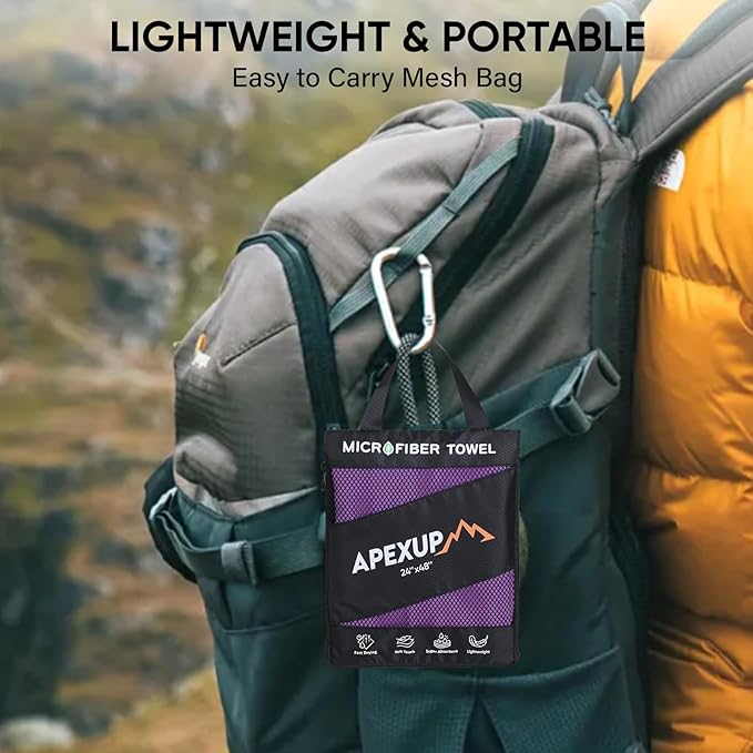 APEXUP Microfiber Travel Towel, Ultra Absorbent Quick Dry Towels, Lightweight Gym Sports Camping Towel for Workout, Yoga, Beach, Shower, Swimming (24"×12", Purple)