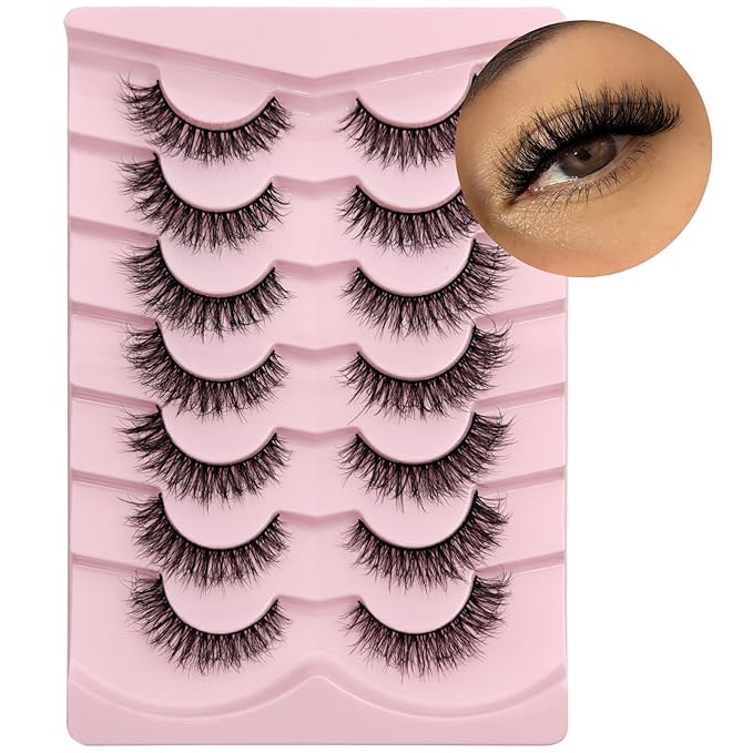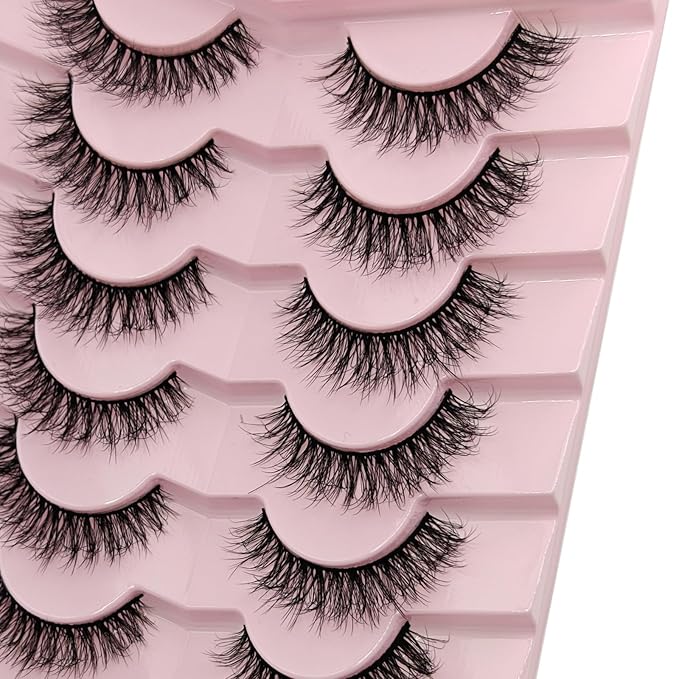 MIKIWI Natural False Eyelashes,Soft and Wispy Natural Look Lashes 7 Pairs Strip Lashes Feathery Lashes