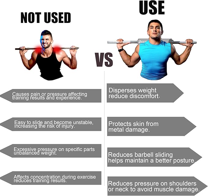 • ❤ERGONOMIC DESIGN: Evenly distributes weight to reduce pressure on the neck and shoulders, ensuring comfort during use. Safely and confidently use heavier weights for squats and hip thrusts.