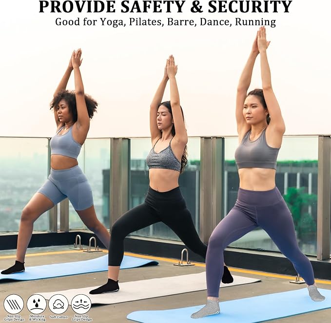 • NON-SLIP BOTTOM DESIGN: Featured anti skid dots on the bottom of the grips socks.These gripper sticky socks can provide better stability & balance on the floor surface while you’re working out