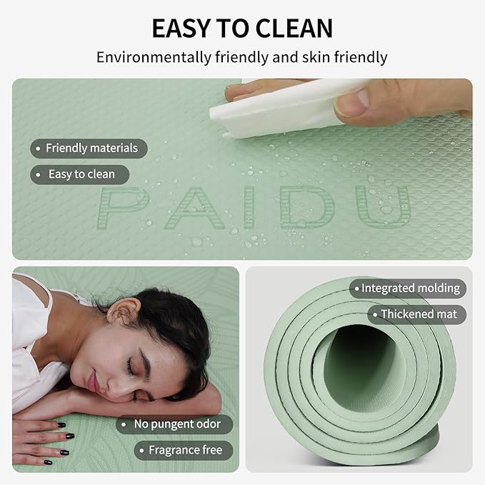 • PREMIUM DURABLE POE:Make your workouts easier with the PAIDU workout mat for home gym. Made from premium quality POE material, this gym mat for home workout is flexible, tear-resistant, and designed for long-lasting durability.