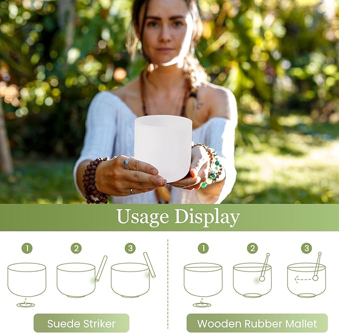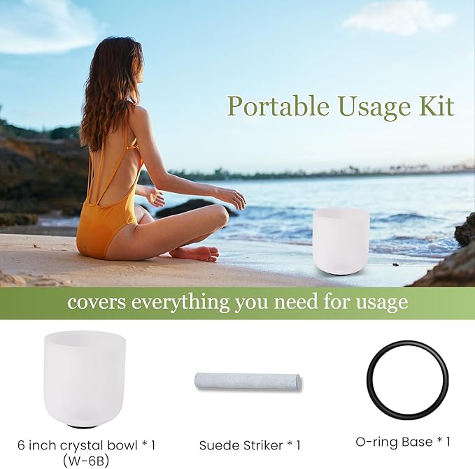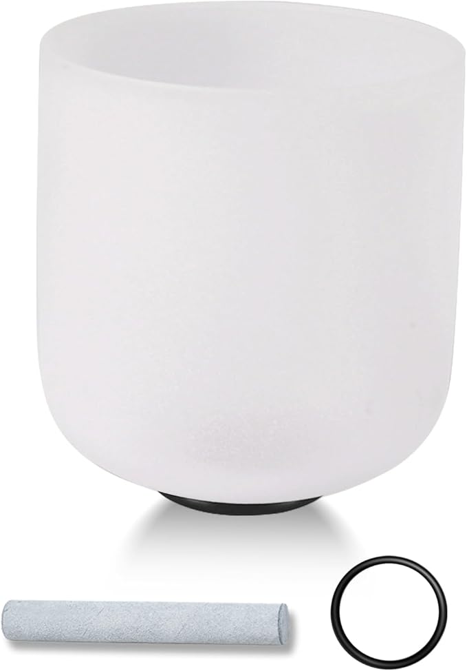 432HZ 6 Inchs Frosted Crystal Singing Bowl Set for Meditation Healing Yoga Chakra Quartz Crystal Sound Bowls with Heavy Duty Carry Case and Rubber Mallet,Suede Striker,O-rings