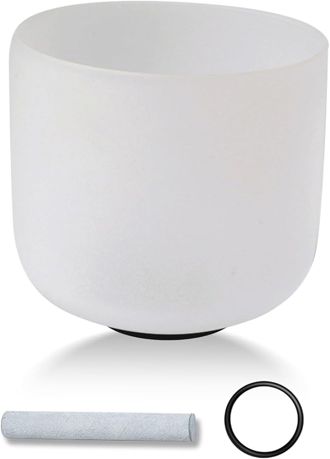 432HZ 7 Inchs Frosted Crystal Singing Bowl Set for Meditation Healing Yoga Chakra Quartz Crystal Sound Bowls with Heavy Duty Carry Case and Rubber Mallet,Suede Striker,O-rings
