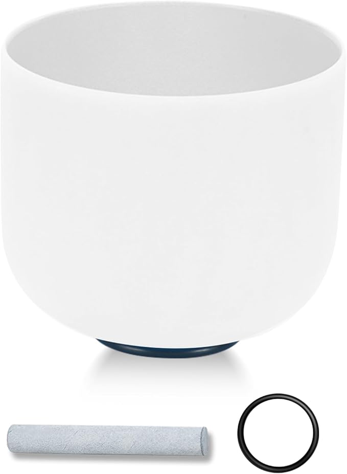 432HZ 8 Inchs Frosted Crystal Singing Bowl Set for Meditation Healing Yoga Chakra Quartz Crystal Sound Bowls with Heavy Duty Carry Case and Rubber Mallet,Suede Striker,O-rings